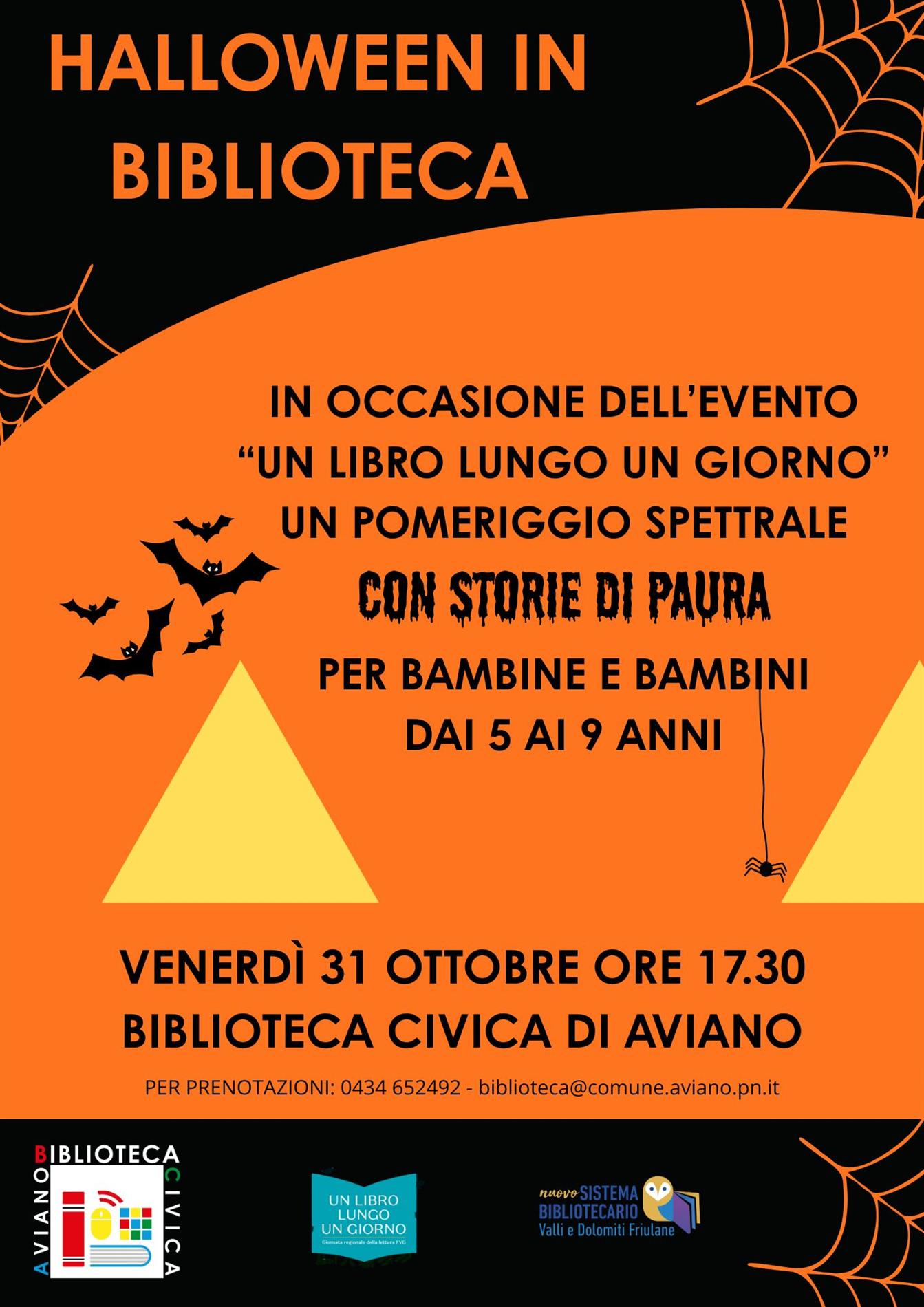Venerdì 31 ottobre in occasione dell'evento "Un libro lungo un giorno" un pomeriggio spettrale con storie di paura per bambine e bambini dai 5 ai 9 anni.